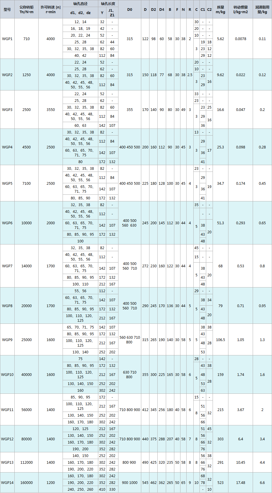 WGP制動(dòng)盤鼓形齒式聯(lián)軸器主要尺寸有: